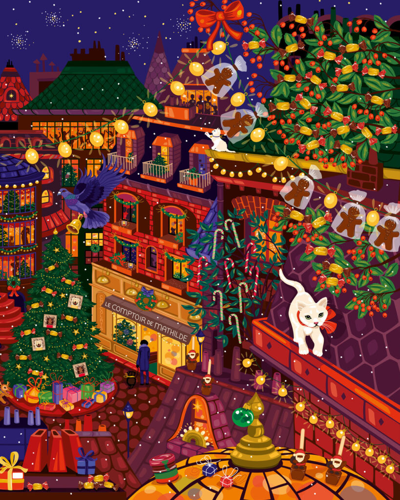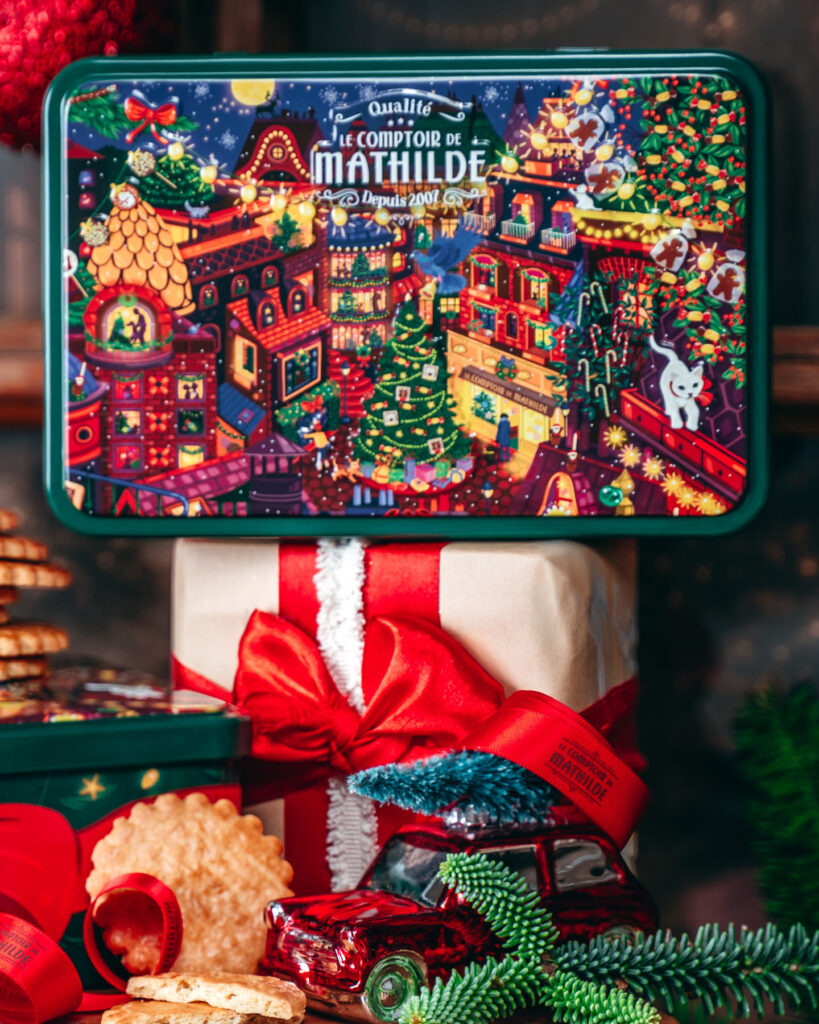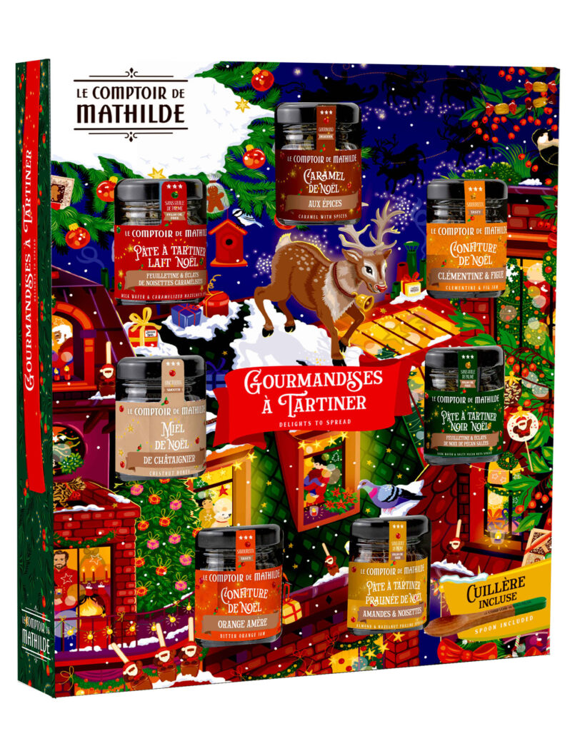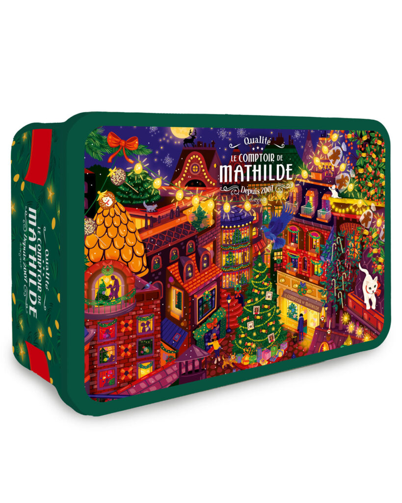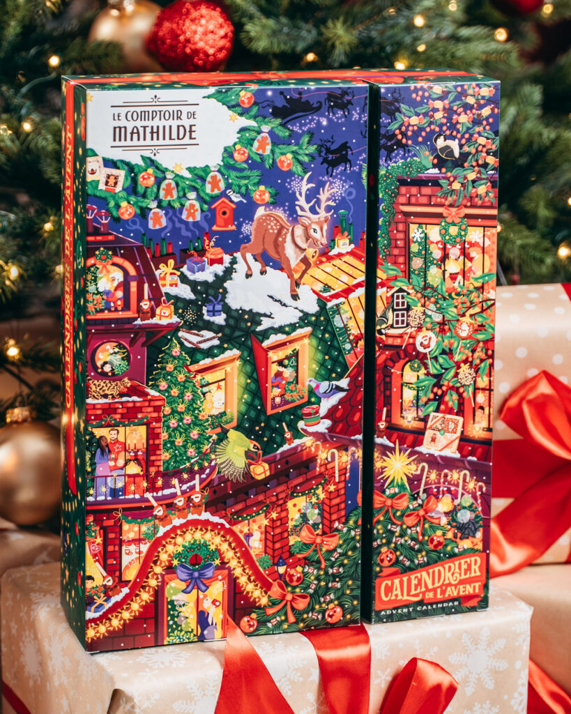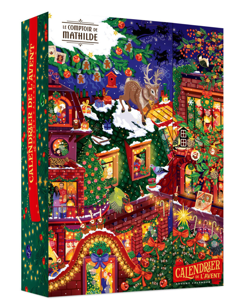 Parution de novembre • Calendrier de l’Avent et épicerie de Noël 2025. Retrouvez Rudolph le petit renne au nez rouge, dans une ville illuminée le soir de Noël. Magie, loupiottes, bougies, ruelles et intérieurs chaleureux, une atmosphère douillette et festive qui se décline sur les packagings de Noël 2025. À retrouver dans toutes les boutiques Le Comptoir de Mathilde et sur leur site.