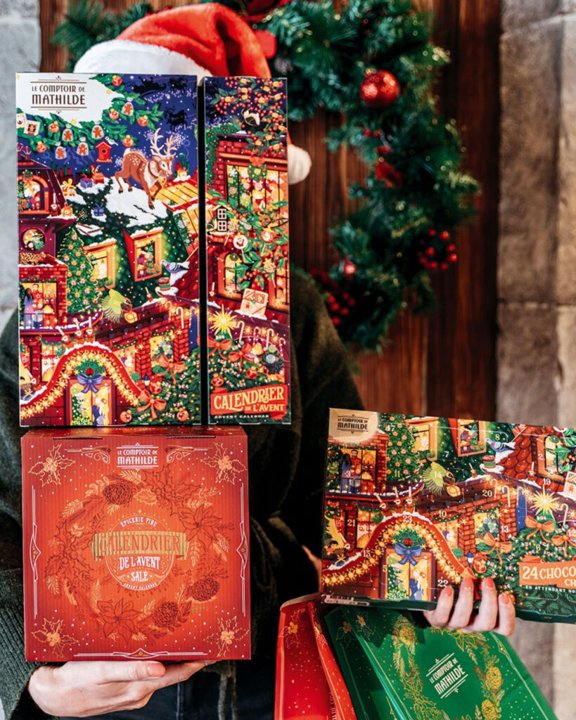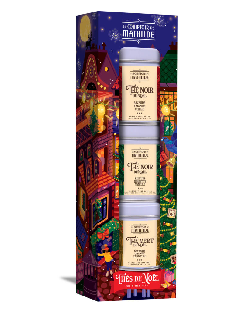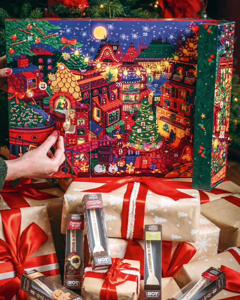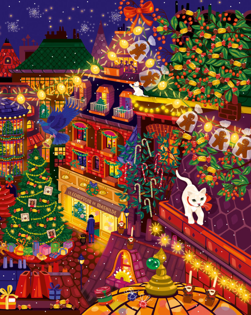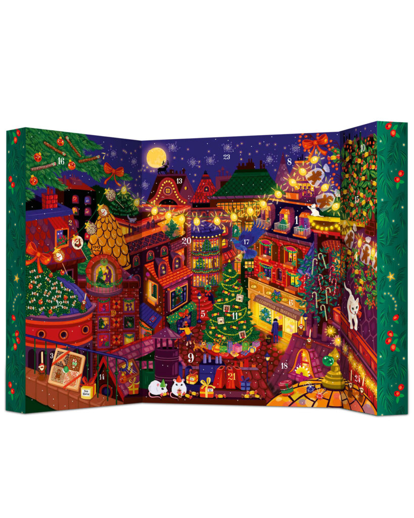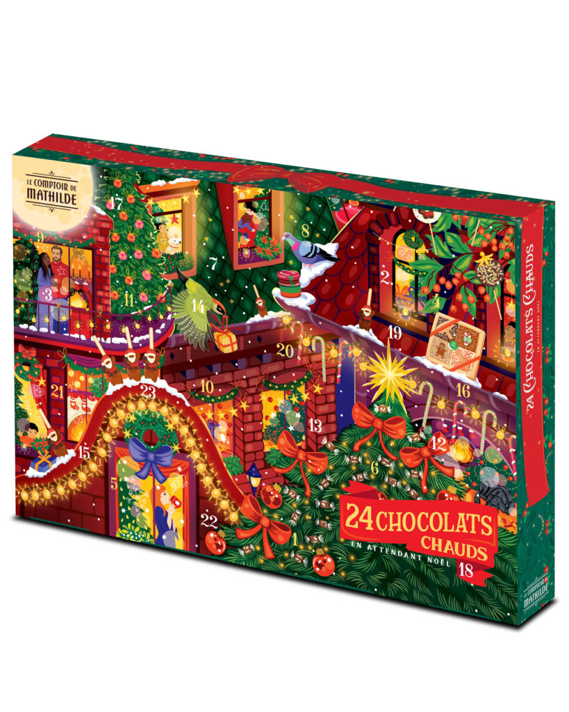 Parution de novembre • Calendrier de l’Avent et épicerie de Noël 2025. Retrouvez Rudolph le petit renne au nez rouge, dans une ville illuminée le soir de Noël. Magie, loupiottes, bougies, ruelles et intérieurs chaleureux, une atmosphère douillette et festive qui se décline sur les packagings de Noël 2025. À retrouver dans toutes les boutiques Le Comptoir de Mathilde et sur leur site.