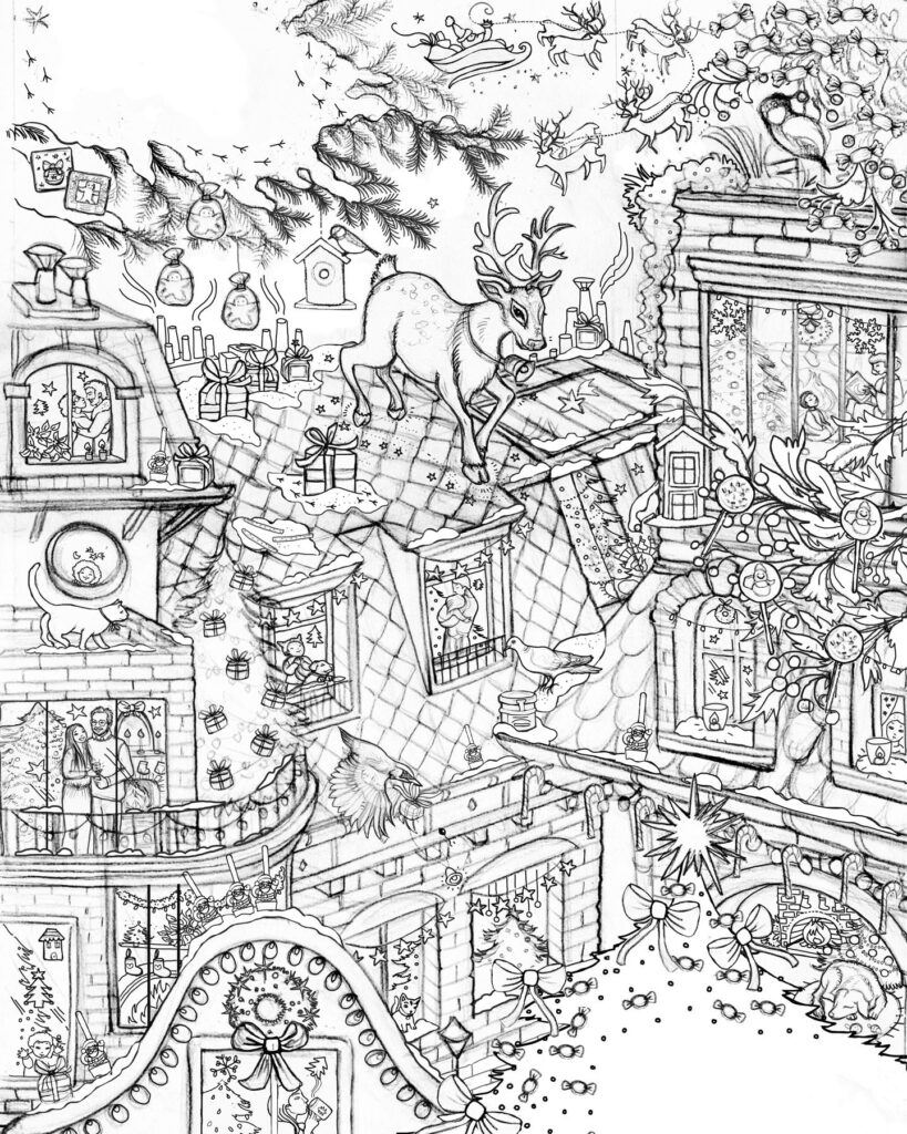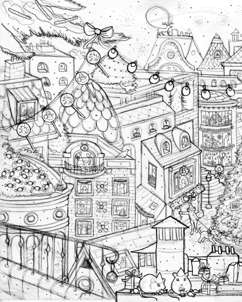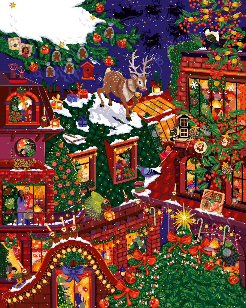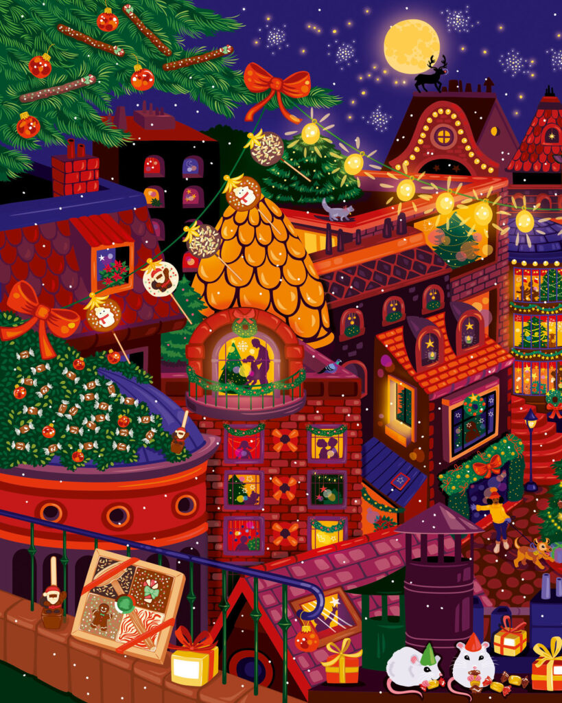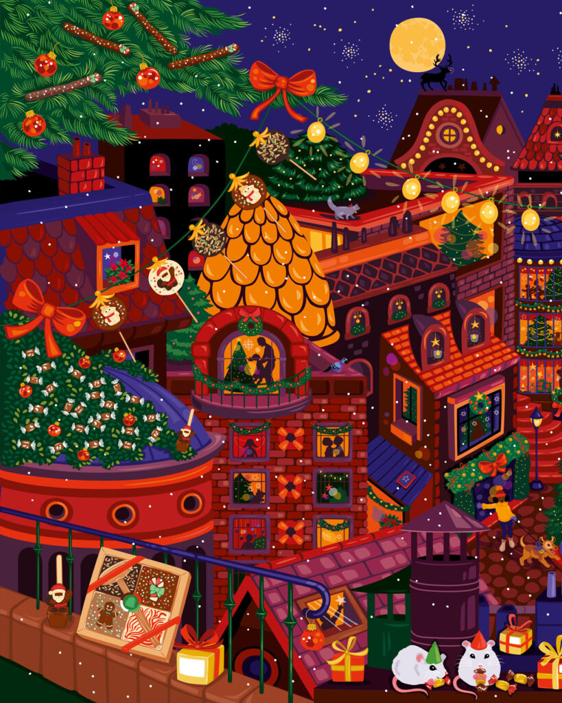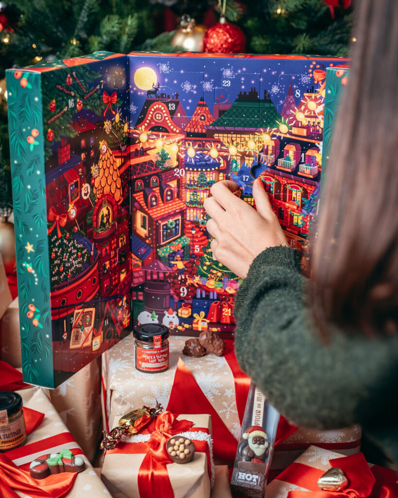 Parution de novembre • Calendrier de l’Avent et épicerie de Noël 2025. Retrouvez Rudolph le petit renne au nez rouge, dans une ville illuminée le soir de Noël. Magie, loupiottes, bougies, ruelles et intérieurs chaleureux, une atmosphère douillette et festive qui se décline sur les packagings de Noël 2025. À retrouver dans toutes les boutiques Le Comptoir de Mathilde et sur leur site.
